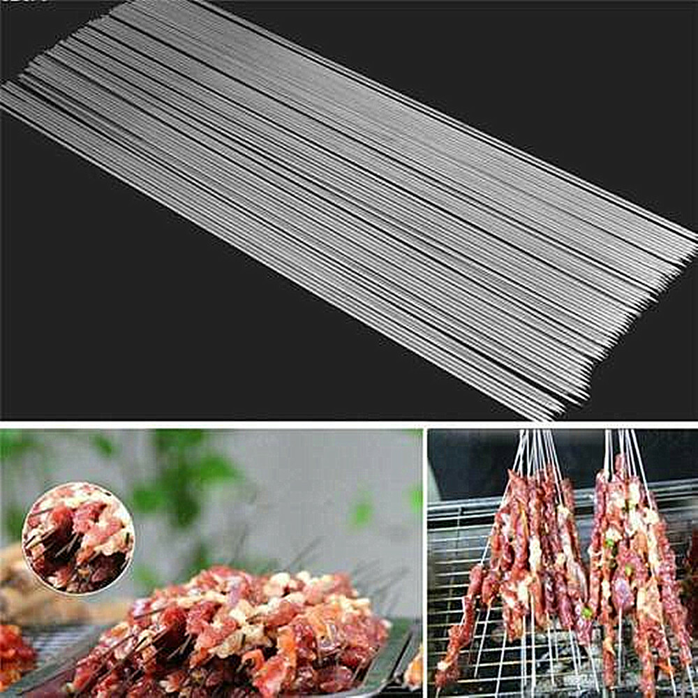 10X BBQ CHROME SKEWERS METAL BARBECUE KEBAB STICKS FOOD GRILL COOKING TANDOOR AU